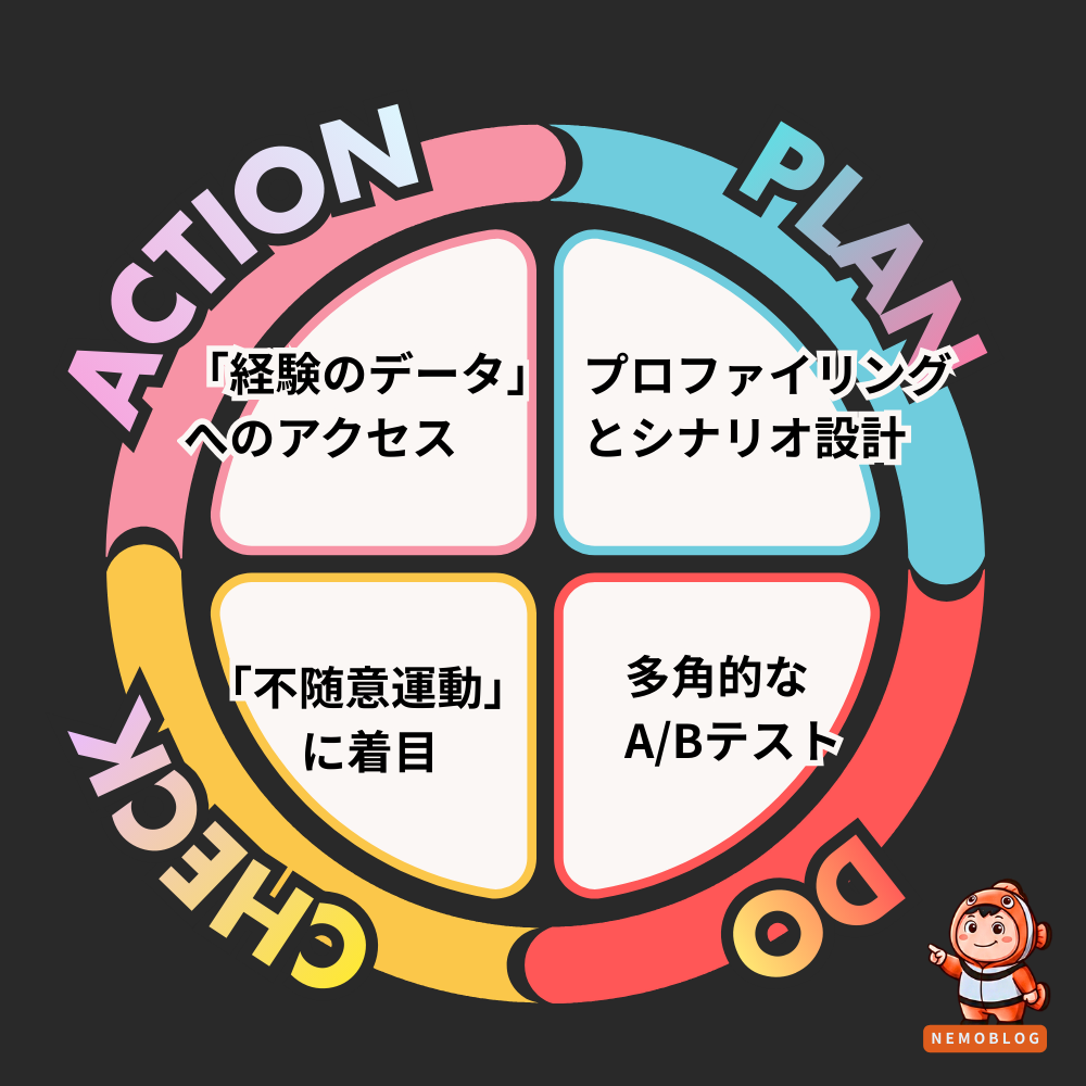 - Action(改善): 「じゃあ次はこうしてみよう」と微調整。
